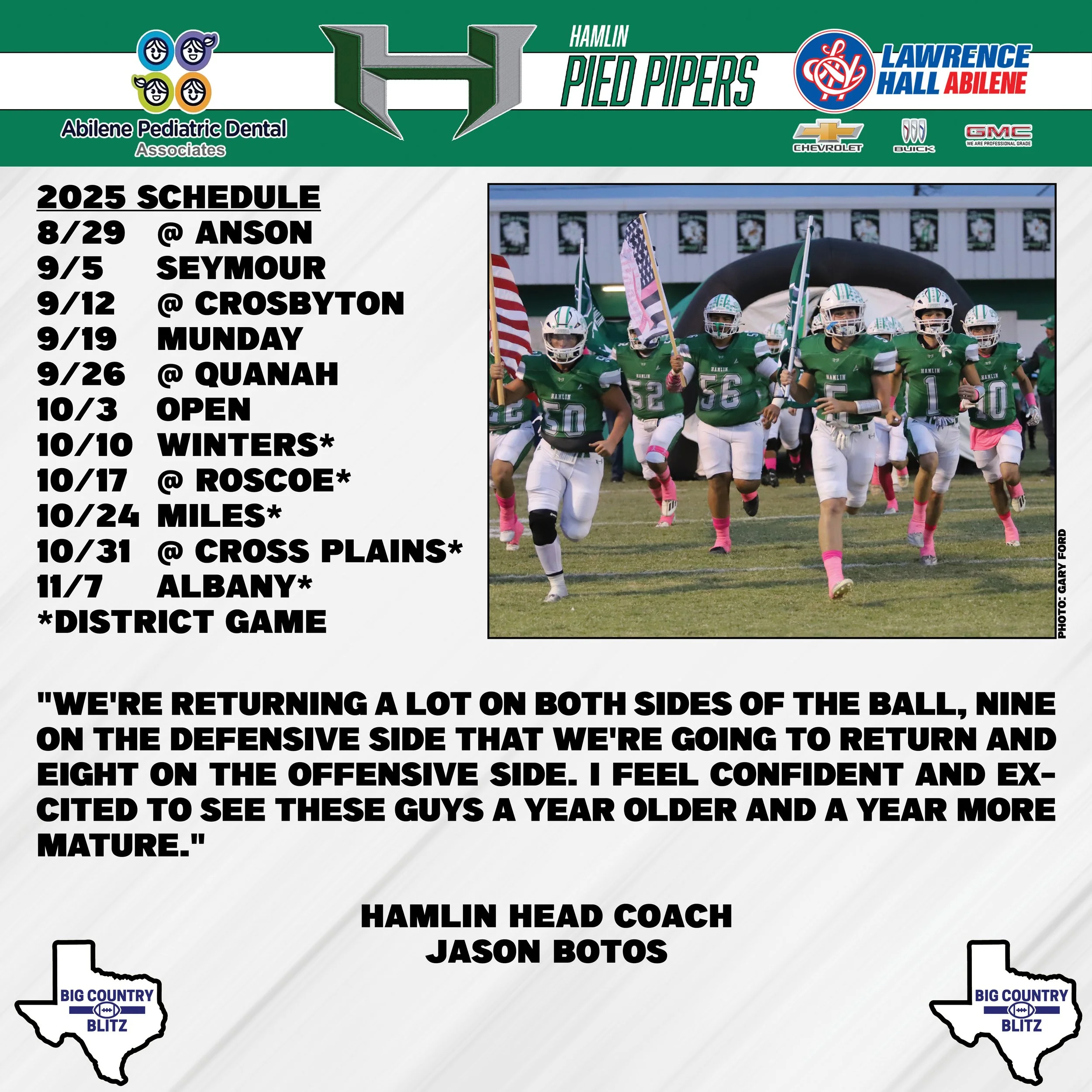 2025 Hamlin Pied Pipers May 22 Written By Cody Coil Hamlin looks to make it back-to-back trips to the playoffs with a large contingent of returning starters coming back. Cody Coil