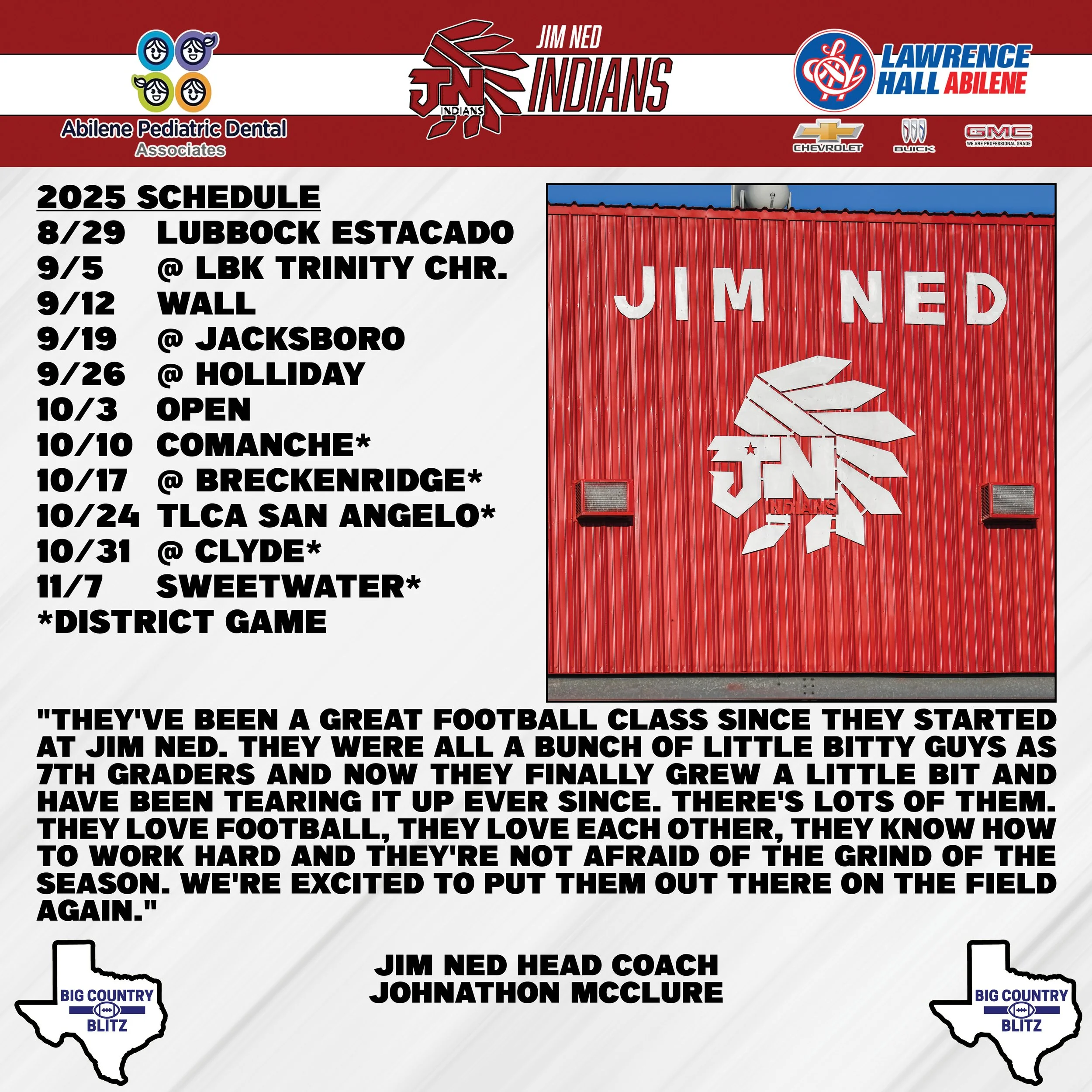 2025 Jim Ned Indians May 20 Written By Cody Coil Jim Ned welcomes back a senior class full of talent, used to winning, and ready to take the Indians on another deep run in the playoffs. Cody Coil