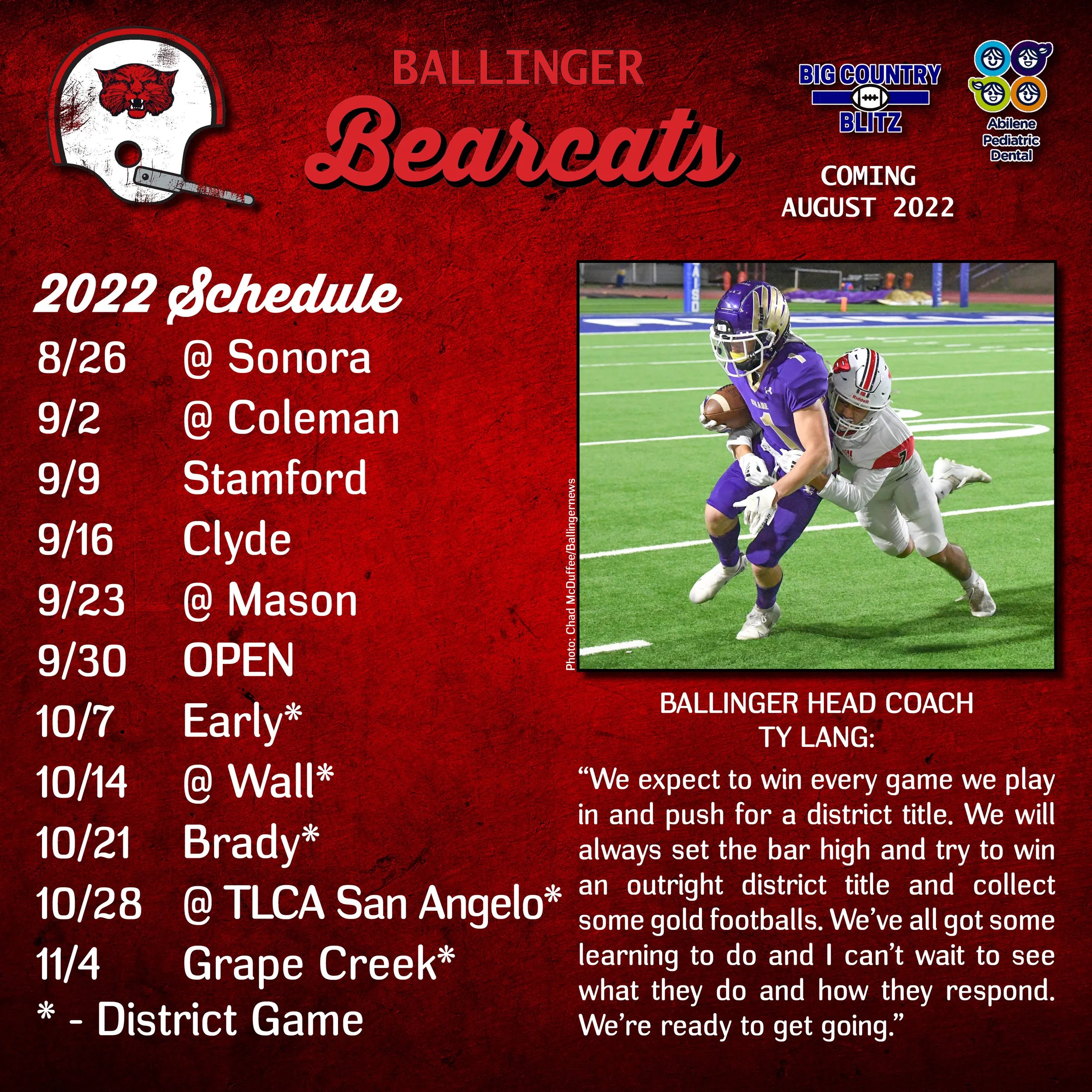 Ballinger Bearcats Jul 11 Written By Cody Coil New head coach Ty Lang is setting the bar high as he takes over at Ballinger. Cody Coil