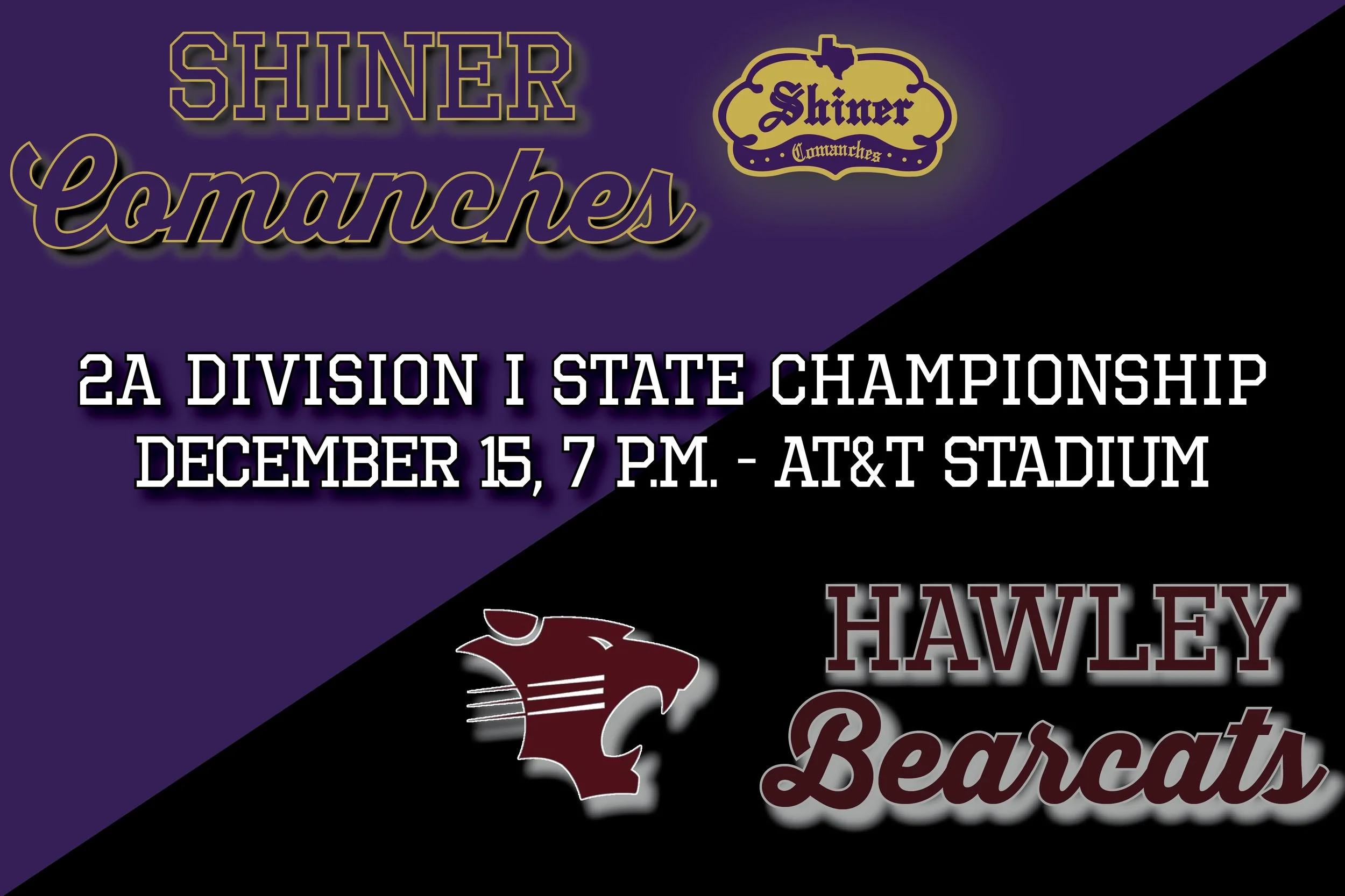 How they got here: Hawley beat San Saba 56-9 in bi-district, beat Sundown 40-22 in area, beat Coleman 21-7 in regionals, beat Cisco 17-14 in quarterfinals, beat Marlin 19-12 in semifinals; Shiner beat Harper 76-6 in bi-district, beat Three Rivers 62-7 in area, beat Schulenburg 67-21 in regionals, beat Refugio 55-14 in quarterfinals, beat Timpson 35-28 in semifinals.