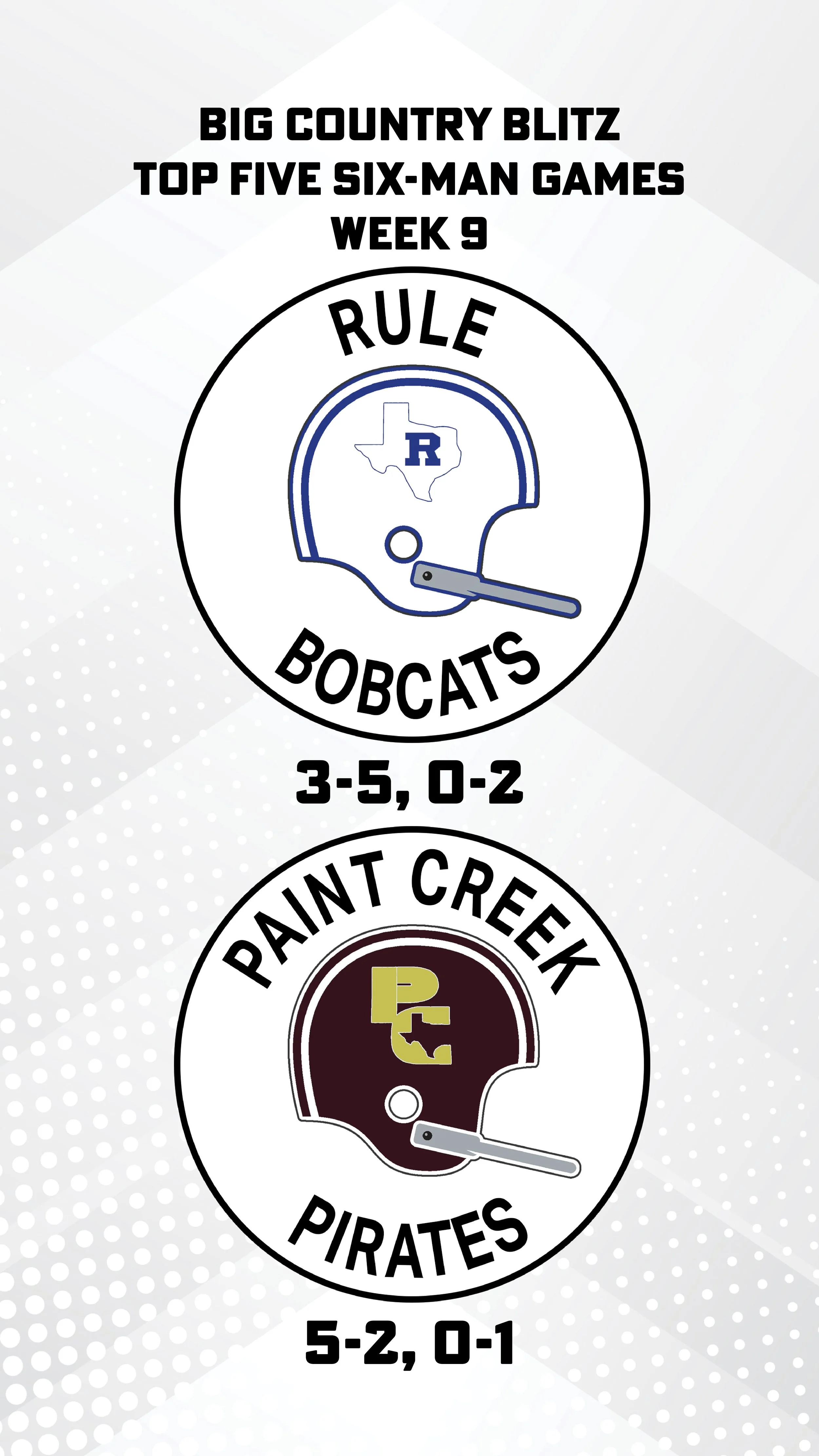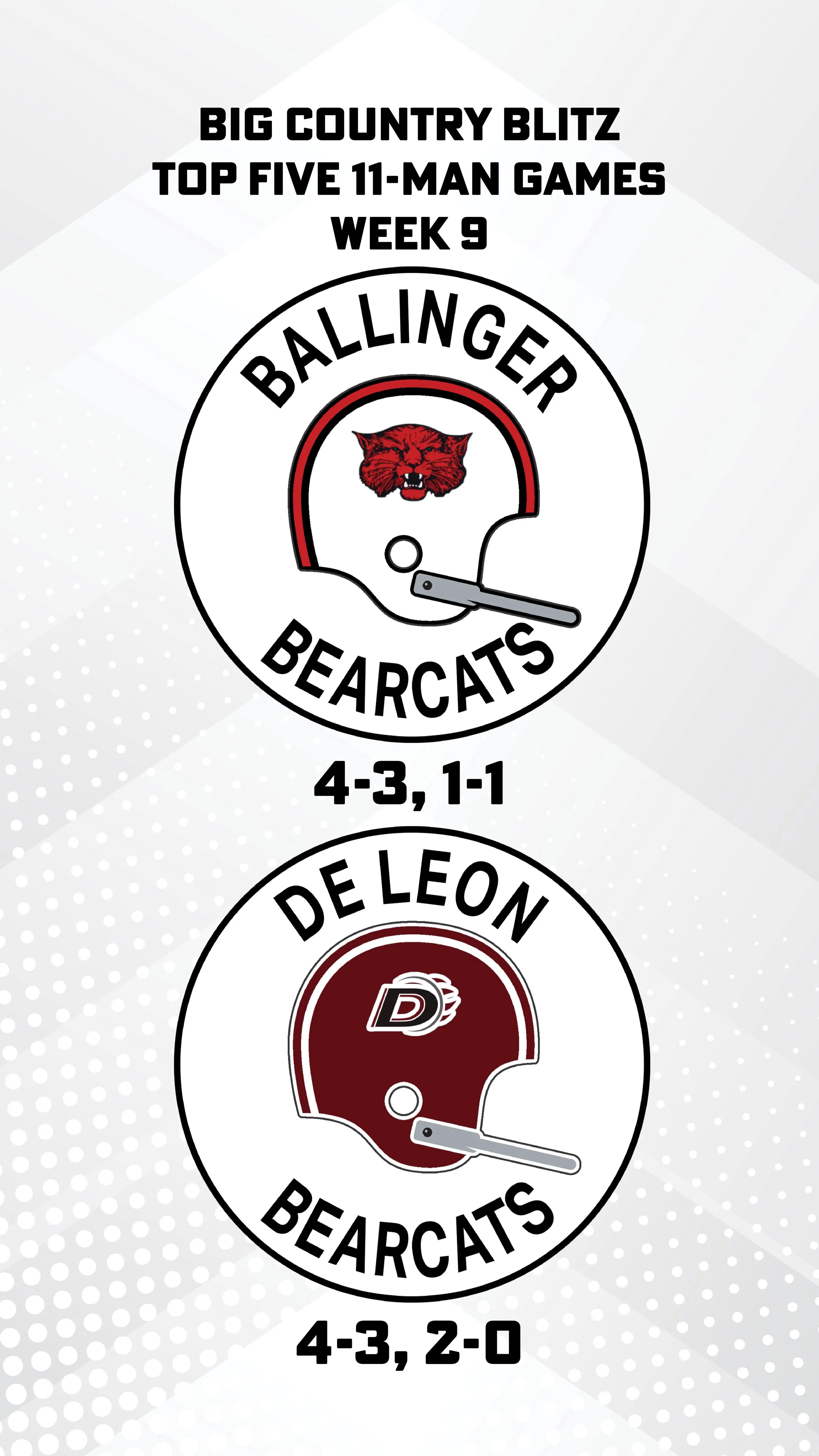 Ballinger heads to De Leon in a battle of Bearcats at number four. De Leon has cruised past its first two district opponents by a combined 111-12. Ballinger is firmly in the playoff mix and should be able to keep it close, but De Leon is the pick.