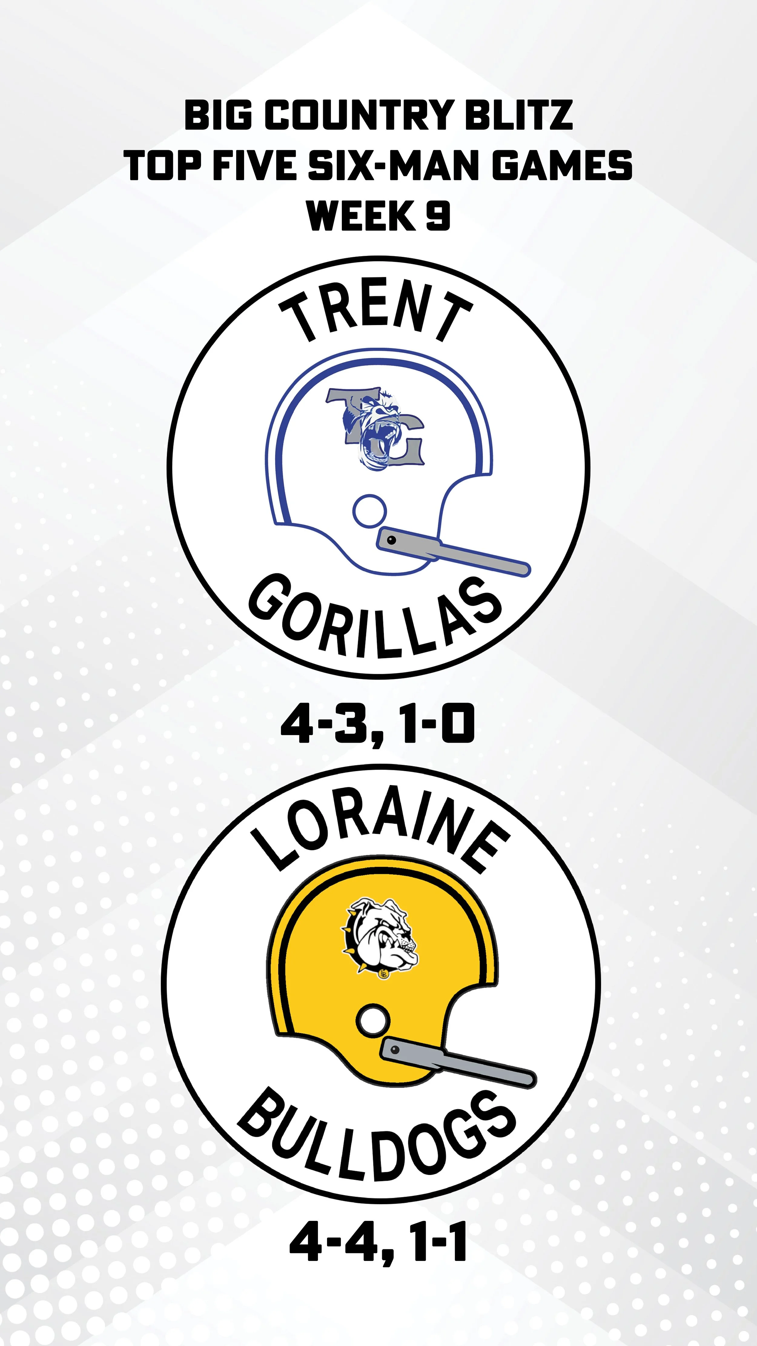 These two teams have split their first two six-man matchups, and this one will be key in the District 6 race. Bronte sits in a first place tie with Trent entering this one, while the Hornets are 1-1 and desperately in need of a win to stay in the playoff chase. I’m leaning Blackwell in a tight one on the road.