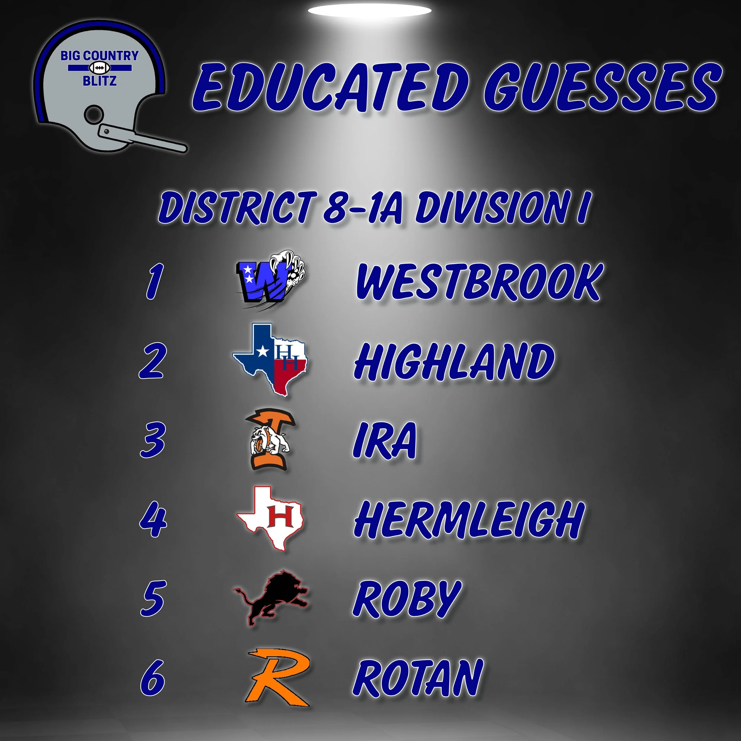 Ira, Hermleigh and Highland are likely the three best teams besides Westbrook. Roby should be better in year two under Israel DeLeon and Rotan will be building the program under first-year Hammer head coach Joe Thomasson.
