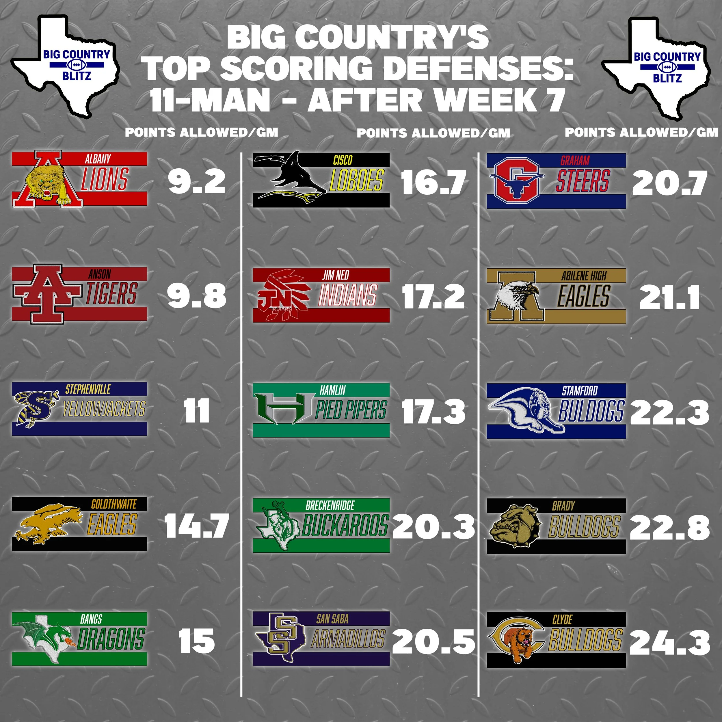 A look at the top defenses in the Big Country based on points allowed per game after seven weeks of action.