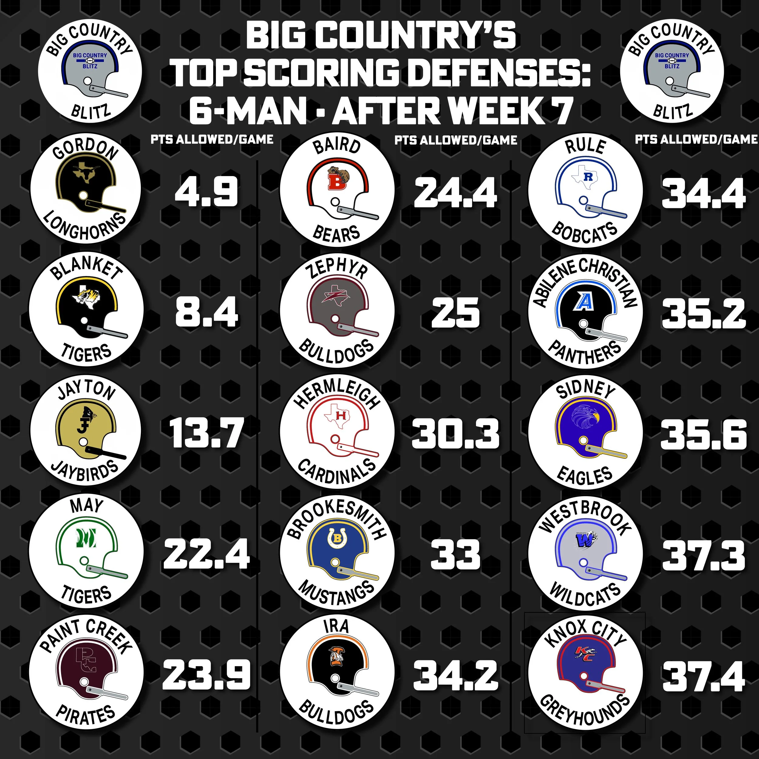 Stamford remains the top area defense in the 11-man ranks, and Gordon stays on top in 6-man.