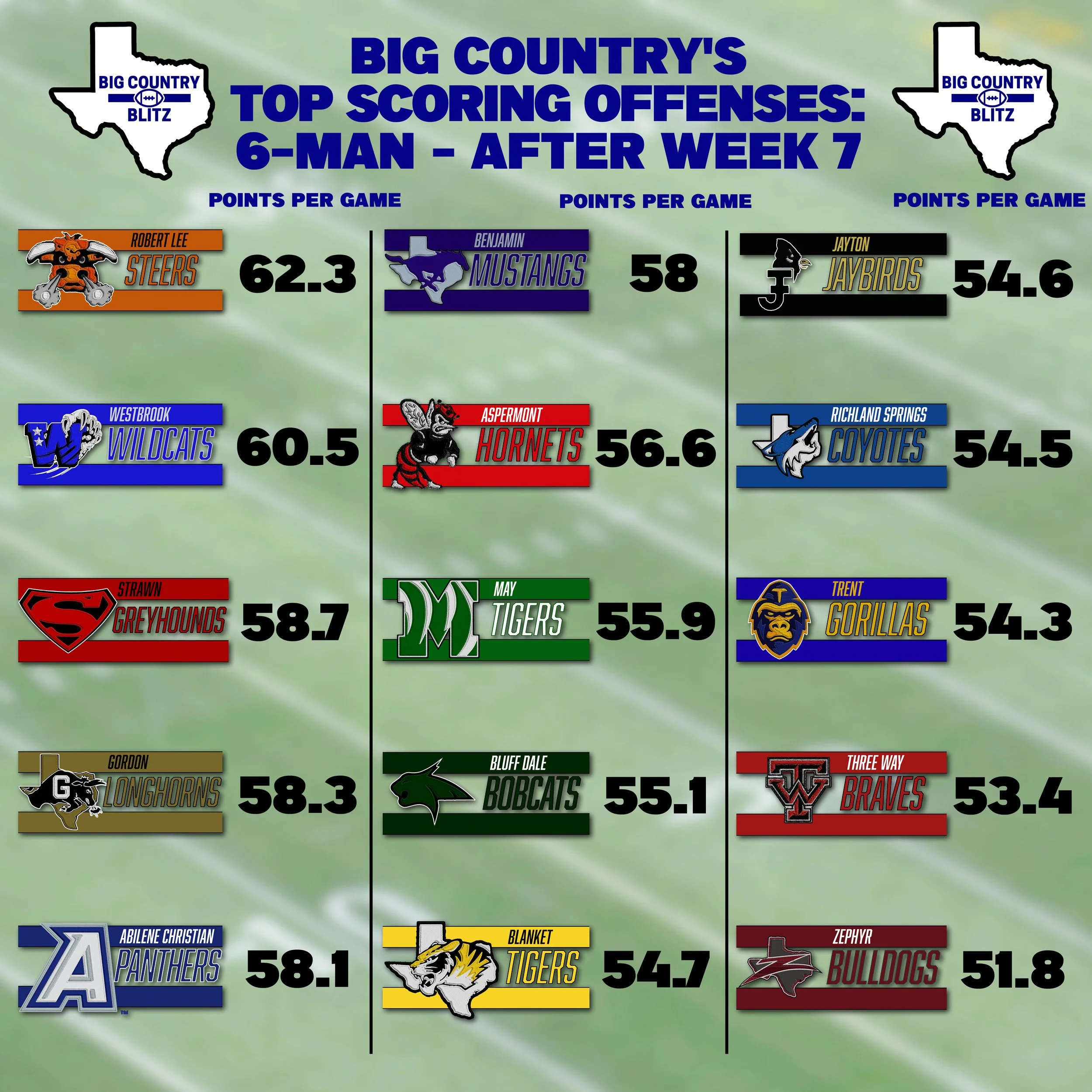 Here is a look at the top-scoring offenses in the Big Country after seven weeks of play.